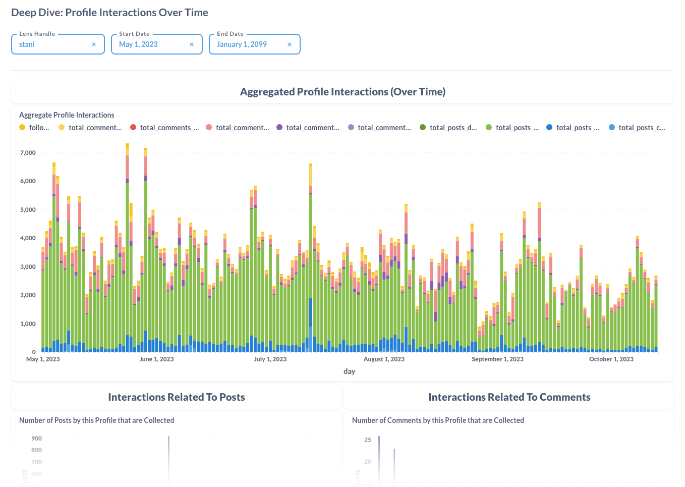 <figure><img src="https://content.gitbook.com/content/EtcdATXDvC0WSePF1xED/blobs/pUPd1Bc8dkGBvi2e5ljO/chart3%20(1).png" alt=""><figcaption><p>Profile Interactions time series chart, discovering how active a profile is over time</p></figcaption></figure>